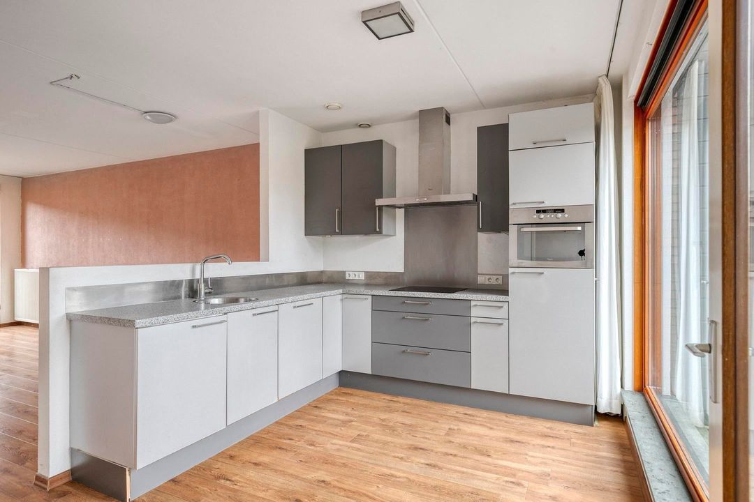 Moderne halfopen keuken (ca. 11 m²) aan de voorzijde, voorzien van hoogwaardige inbouwapparatuur en een stijlvol werkblad.