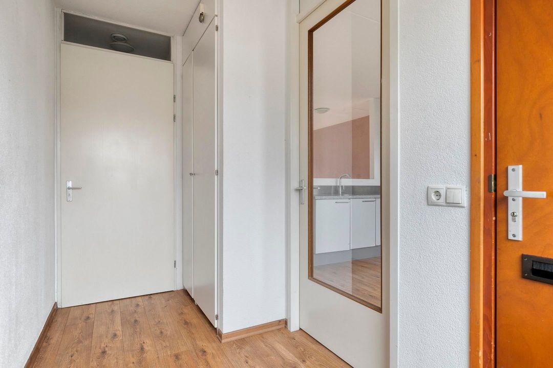 Entree op overloop met inbouw wandkasten en toegang tot twee slaapkamers. Slaapkamer 3 is gelegen aan de achterzijde van de woning. Slaapkamer 4 van ca.13 m2 is gelegen aan de voorzijde van de woning. De gehele 2e etage is voorzien van laminaat vloer.