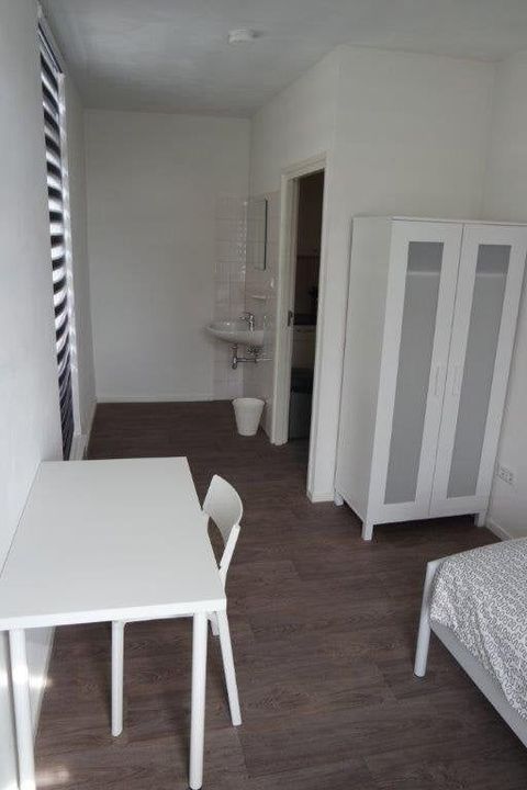 De gemeubileerde kamer is uitgerust met een bed, bureau en kast. Tevens beschikt elke kamer over een eigen wastafel met spiegel.
