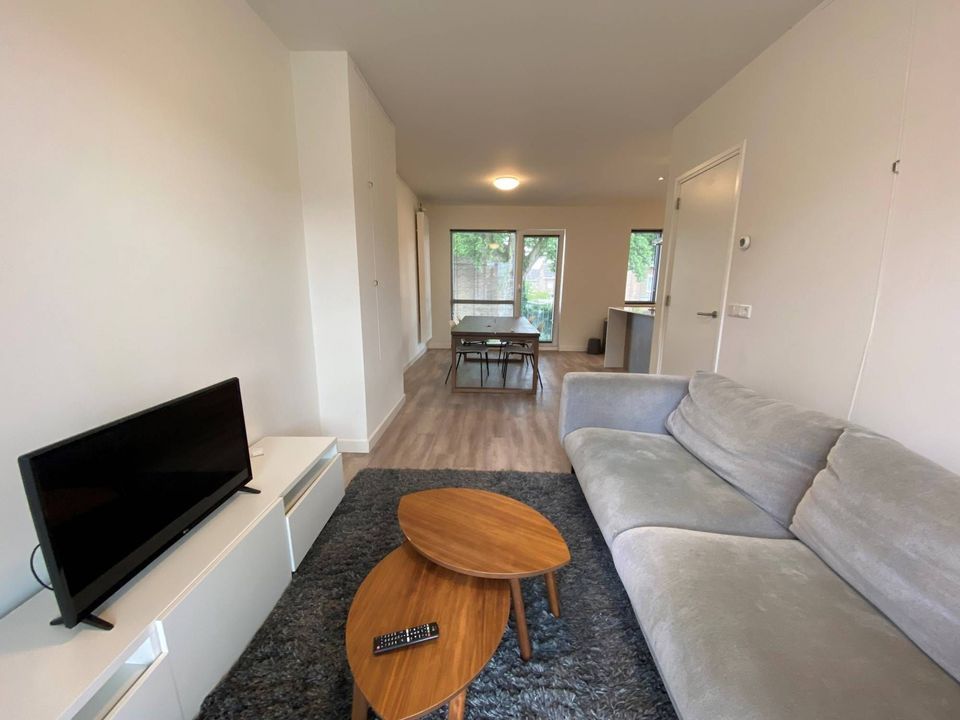 Entree in het appartement op de begane grond met trapopgang naar de verdieping. Overloop met toegang tot de woonkamer, separaat toilet, wasruimte en trapopgang naar de tweede verdieping. Entree in woonkamer met open keuken gesitueerd aan de voorzijde. De woonkamer is ca. 35 m². Luxe keuken voorzien van vaatwasser, 5-pits gasfornuis, koelkast, vriezer, afzuigkap en combi oven magnetron. De woonkamer geeft aan de achterzijde toegang tot zeer ruim dakterras van ca. 15 m².